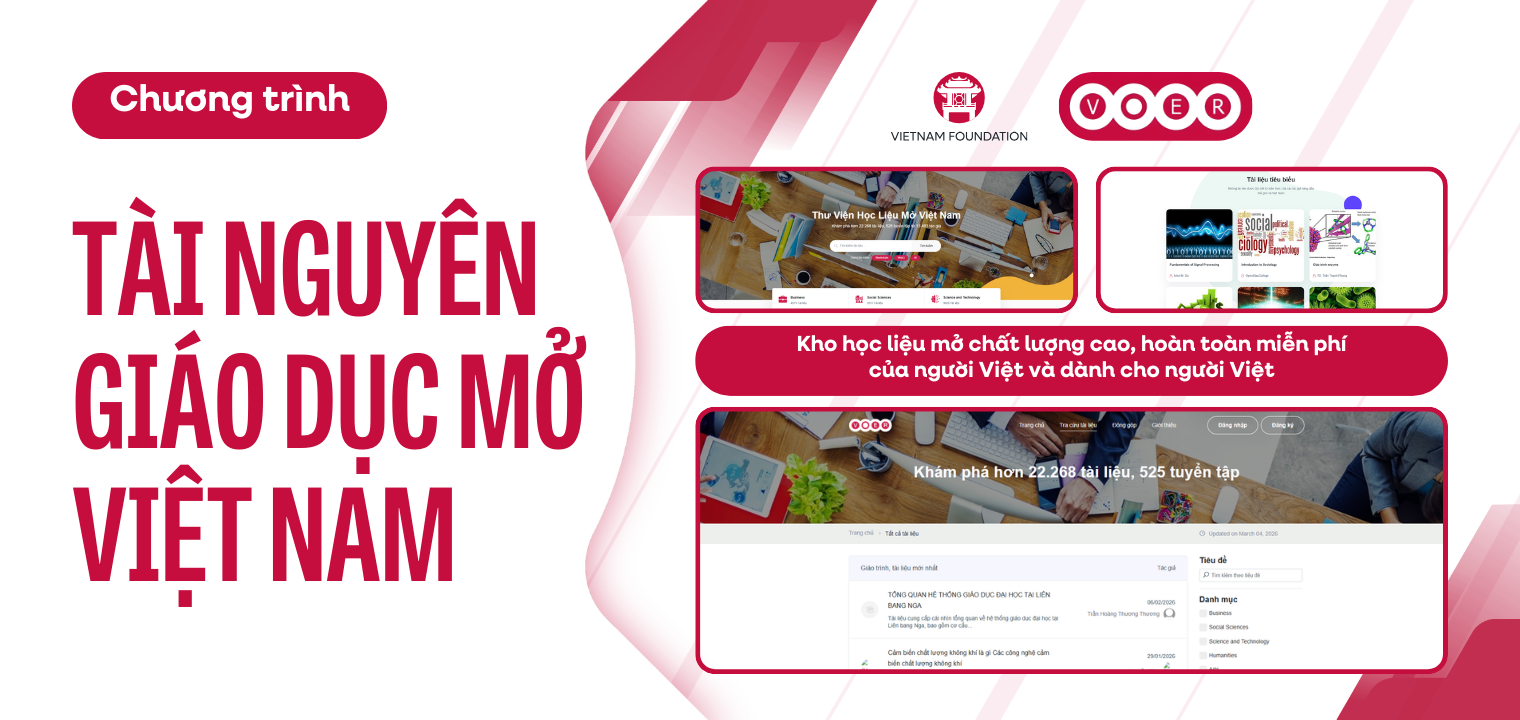 Chương trình VOER ra đời năm 2014 và đến nay đã có 22.280 tài liệu, 525 tuyển tập từ 13.484 tác giả đóng góp. Đây là kho học liệu mở hoàn toàn miễn phí của người Việt và dành cho người Việt. Với nội dung phong phú, đa dạng và cho phép người dùng có thể lưu trữ dưới dạng pdf, VOER giúp hàng triệu học sinh, sinh viên tiếp cận nguồn học liệu chất lượng cao. VOER được sử dụng bởi người dùng trên thế giới, thông qua đó giúp chia sẻ lịch sử, văn học và văn hóa Việt Nam tới cộng đồng toàn cầu.