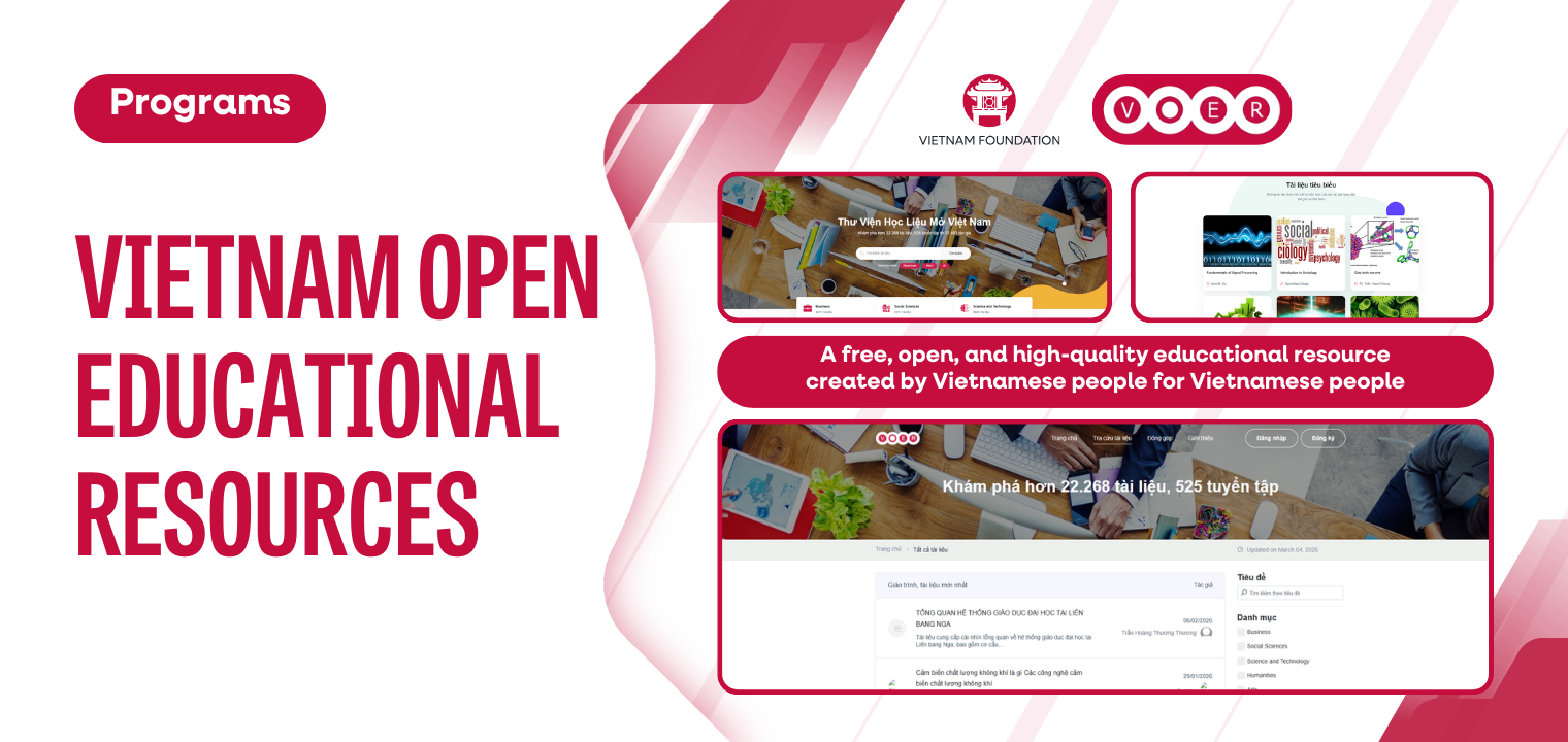 Launched in 2014, VOER is a free, open, and high-quality educational resource created by Vietnamese people for Vietnamese people. The program has accumulated 22,280 documents and 525 collections contributed by 13,484 authors. VOER allows millions of students to access high-quality learning materials by providing a variety of categories and the ability to download documents in pdf format. Furthermore, VOER has been promoting Vietnamese history, literature, and culture worldwide through its global user base.