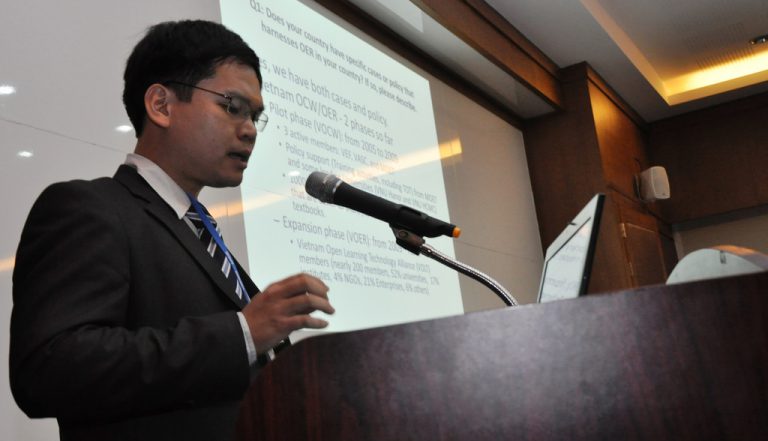 In a survey-based overview on OERs in Asia, Ishan Sudeera Abeywardena, Wawasan Open University, named the trends of OERs in the region, which are spreading quickly and widely, and shed light on outstanding issues, namely the lack of software integration, and limited access to computers and to internet, as well as open questions about opyright, ownership and awareness of available resources. He closed his presentation pointing out that a “culture of collaboration between the organizations needs to be established.”